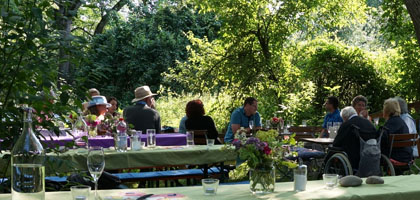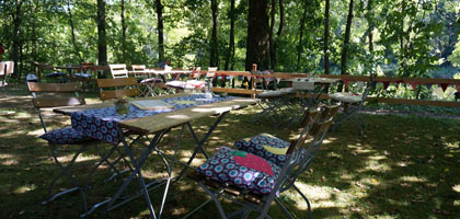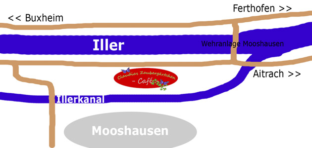 Ein lauschiger Garten am Illerradweg .... Gemütliche Sitzplätze unter einem großen Nußbaum .... 300 Meter flussabwärts vom Illerwehr-Mooshausen auf der württembergischen Seite An der Iller 20 88319 Aitrach - Mooshausen GPS: 47.970015 / 10.087950 Google Maps |